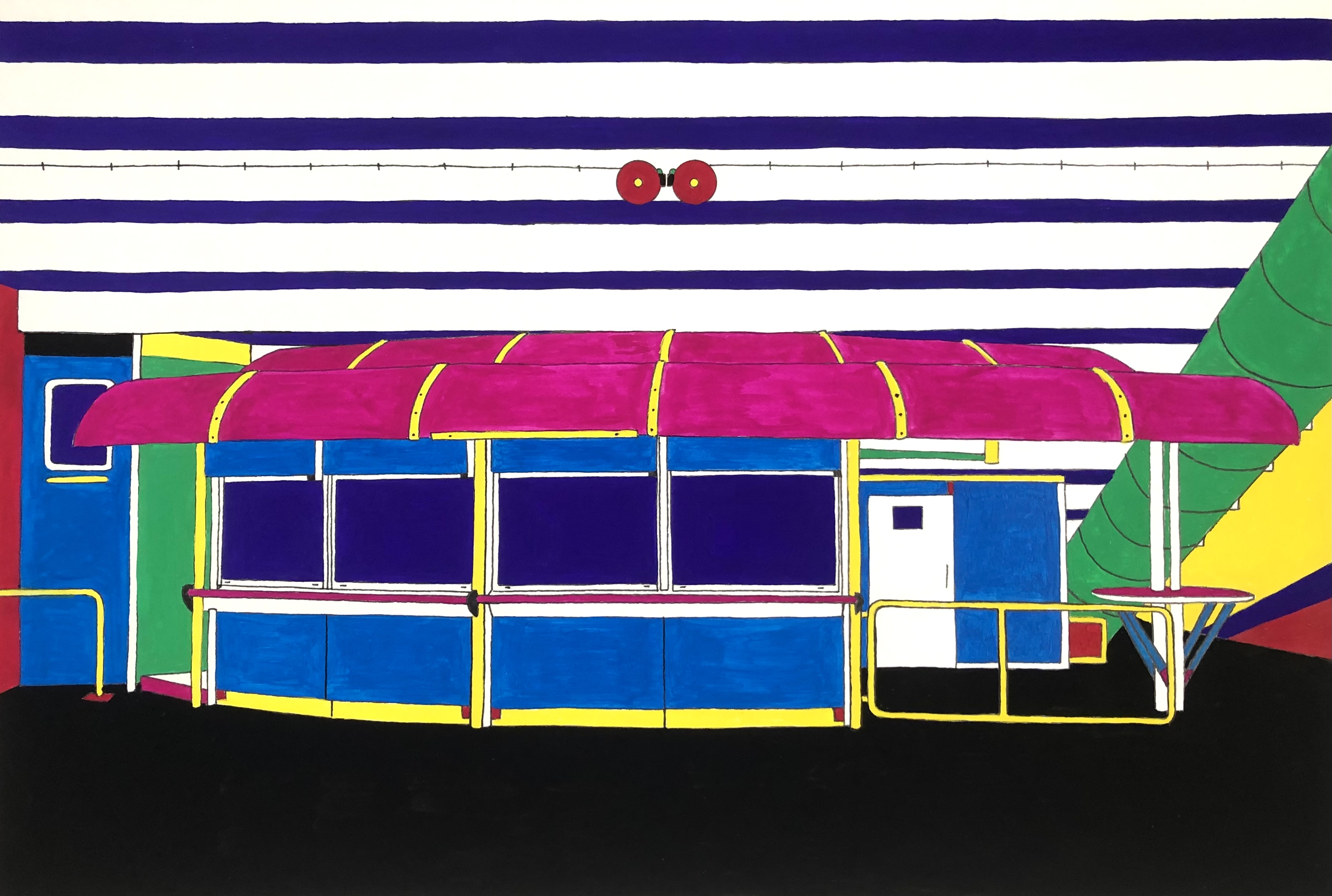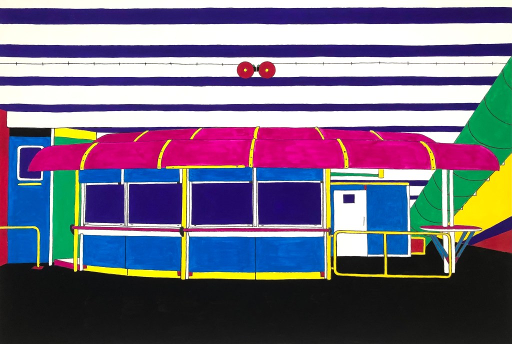 Six works based on original photographs taken through the front windows of closed down shops and businesses, as found at various locations. Each a memento mori to the death of retail.
