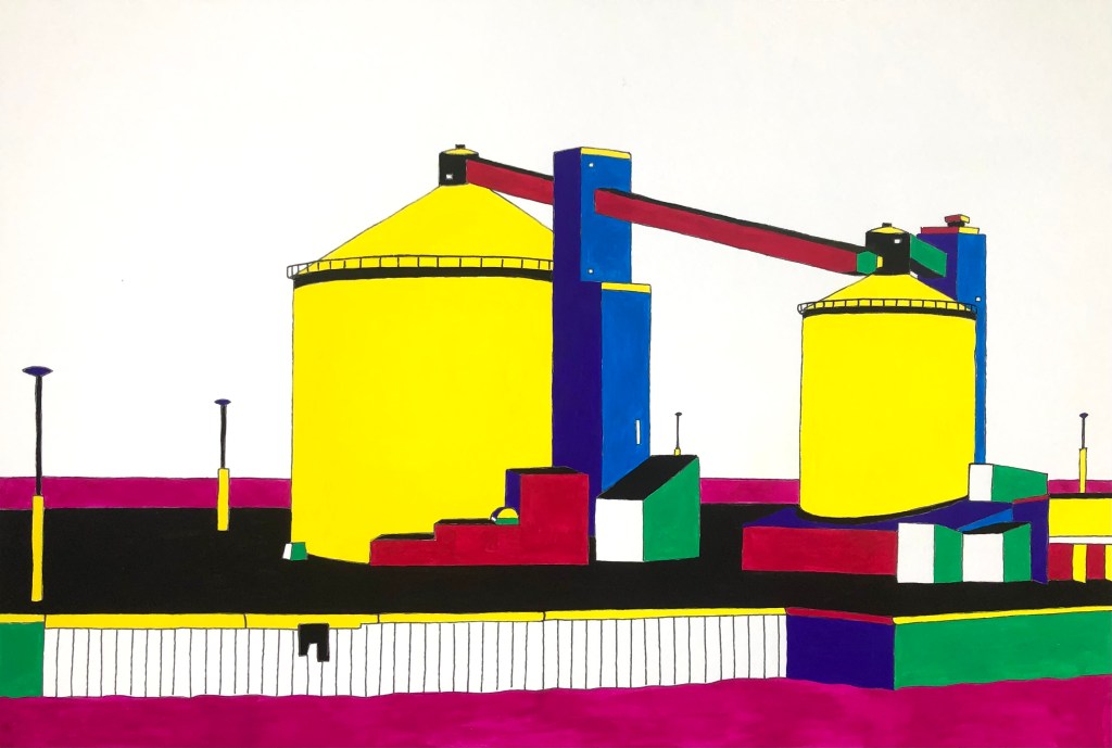 A series of works inspired by aerial views of housing estates, retail parks, flightpaths and car parks as found on the edges of towns and cities. A potentially bland subject matter is bought to life using threads based on the six colours of the Hexachrome colour scheme.