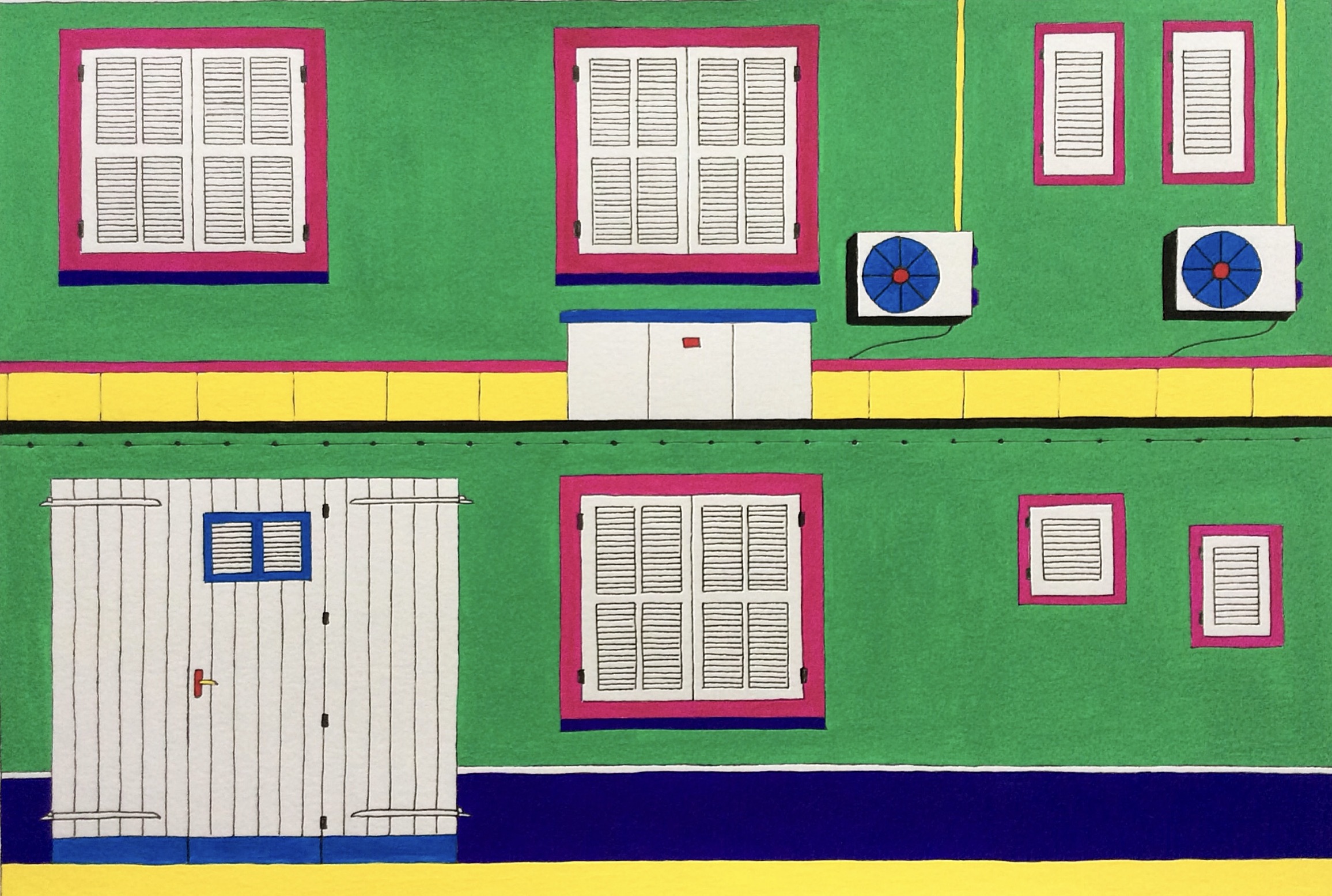 Hexa Bunga Six bungalow floor plans Gouache and pen on paper Each 300mm x 300mm 2019
