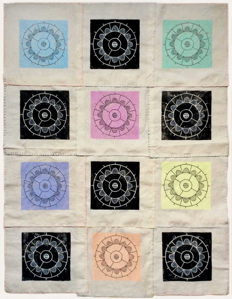 Ink, thread & paper on cotton